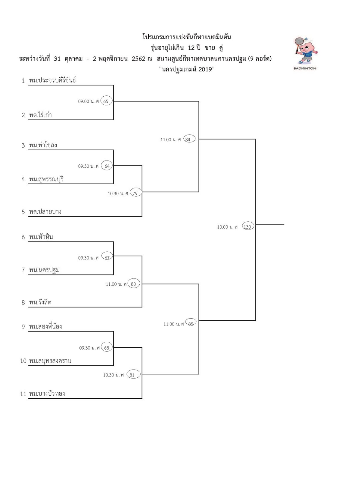 ณ สนามแบดมินตันเทศบาลนครนครปฐม (9 คอร์ด)