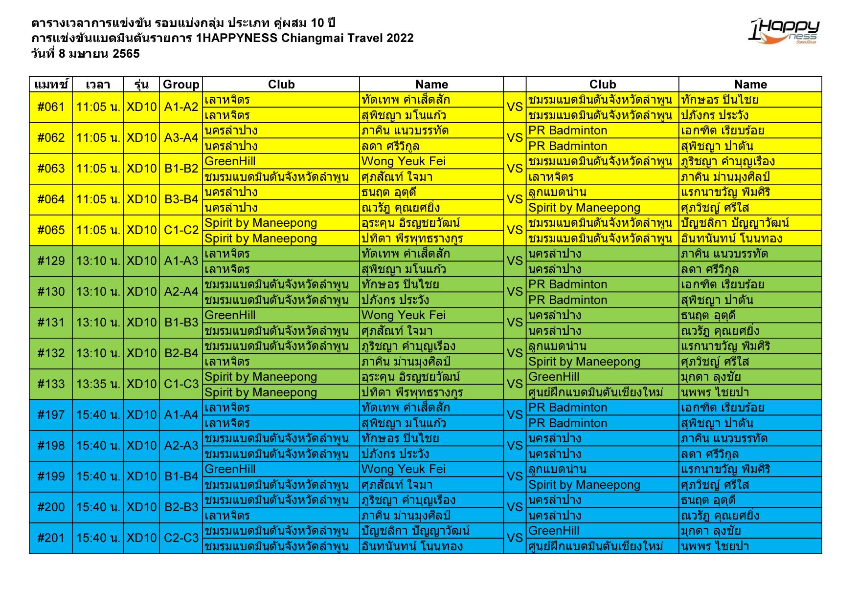 วันที่ 8 - 9 เมษายน 2565ณ สนามแบดมินตัน CMI จ.เชียงใหม่