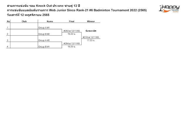 - ถ้านักกีฬาไม่ครบตามจำนวน สาย KnockOut จะขึ้นกับจำนวนนักกีฬา