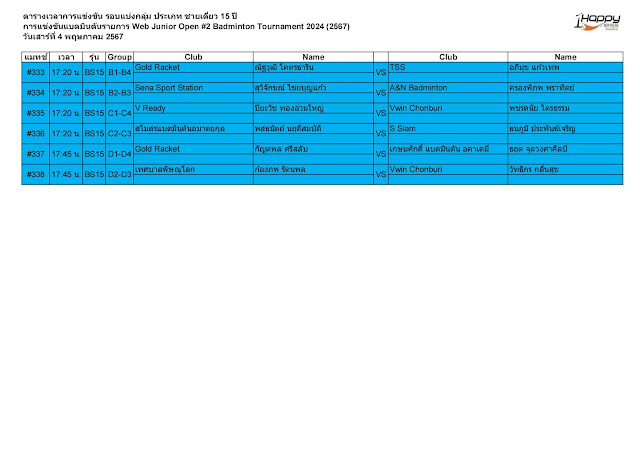 - กรณีคะแนน Head to Head เท่ากันให้ทำการแข่งขันใหม่ 1 เกม 21 แต้มไม่มีดิวส์