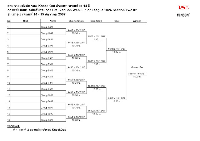 - สายการแข่งขันรอบแบ่งกลุ่ม และ สายการแข่งขัน รอบ Knock Out สุ่มโดยใช้โปรแกรมคอมพิวเตอร์