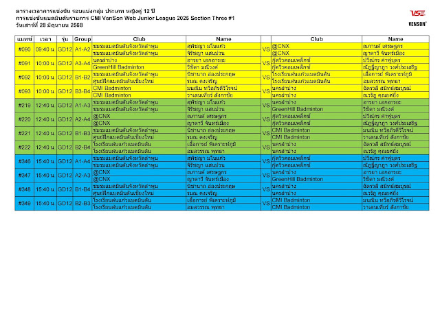- สายการแข่งขันรอบแบ่งกลุ่ม และ สายการแข่งขัน รอบ Knock Out สุ่มโดยใช้โปรแกรมคอมพิวเตอร์